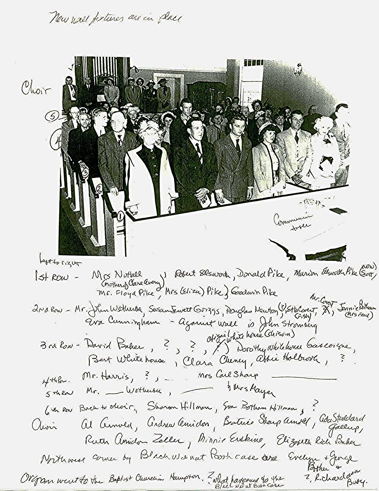 This was taken on Mother's Day, which was also a Communion Sunday, during which several new members joined our church. Below is a key to the photograph which identifies several people.