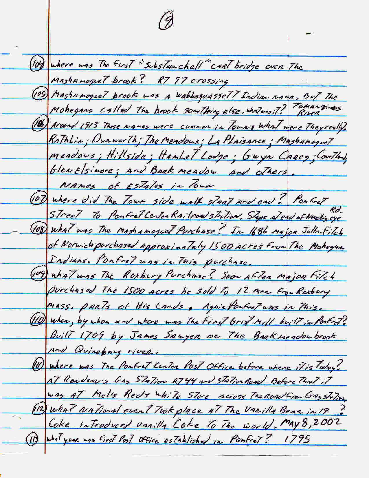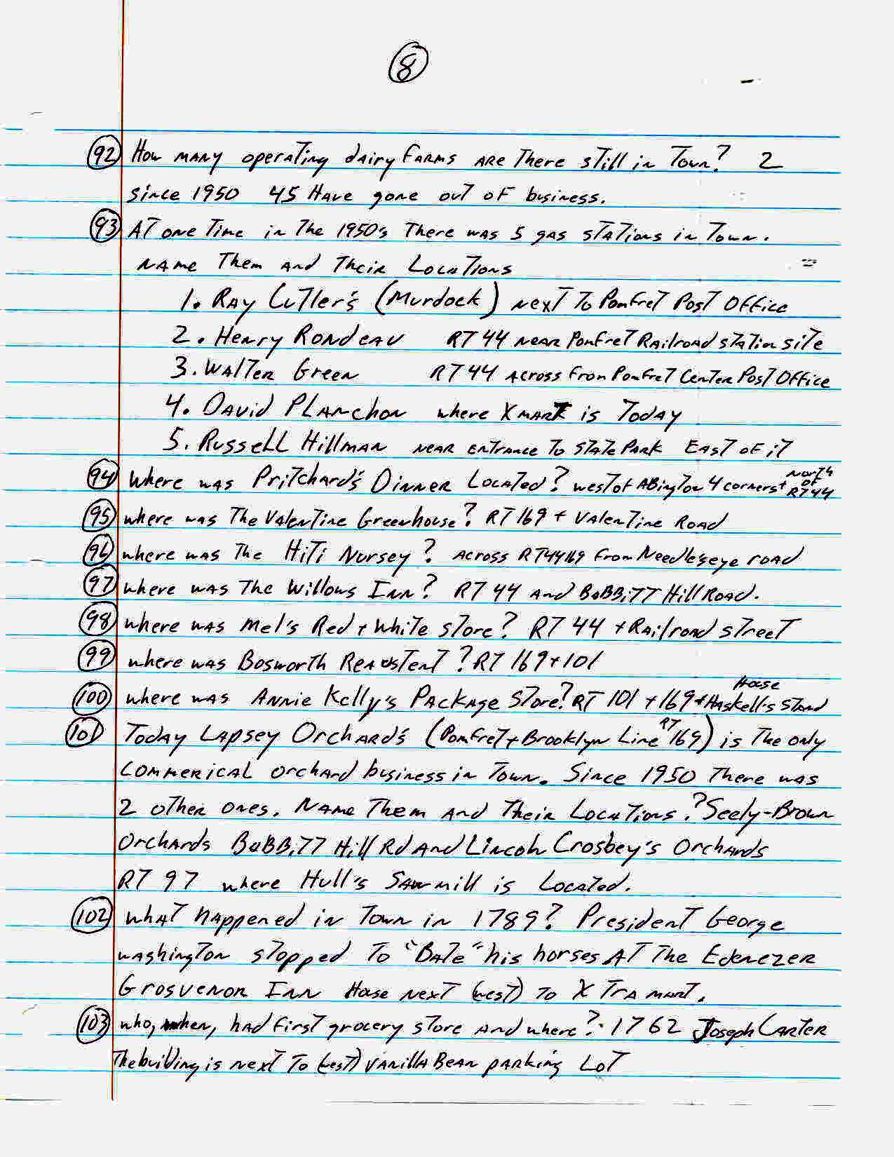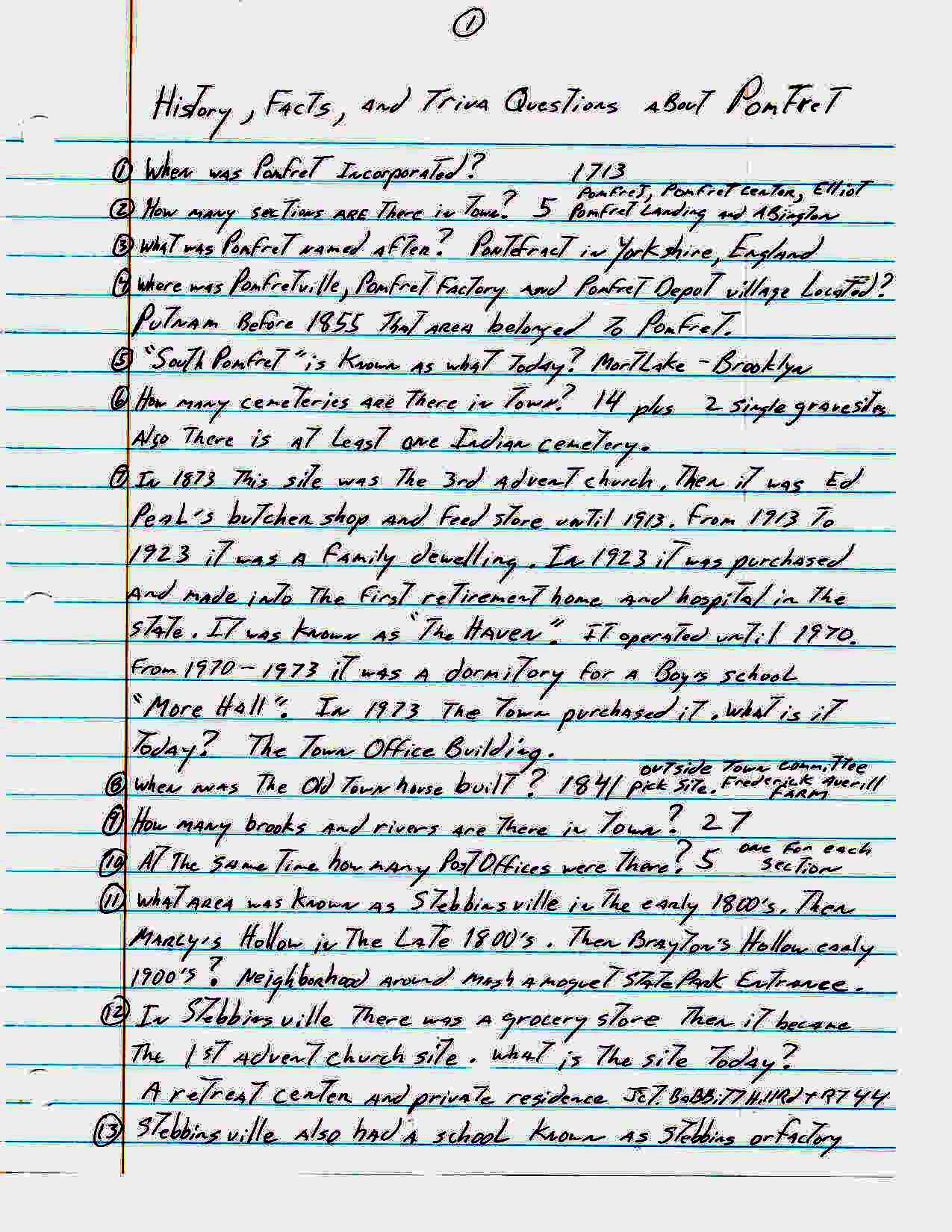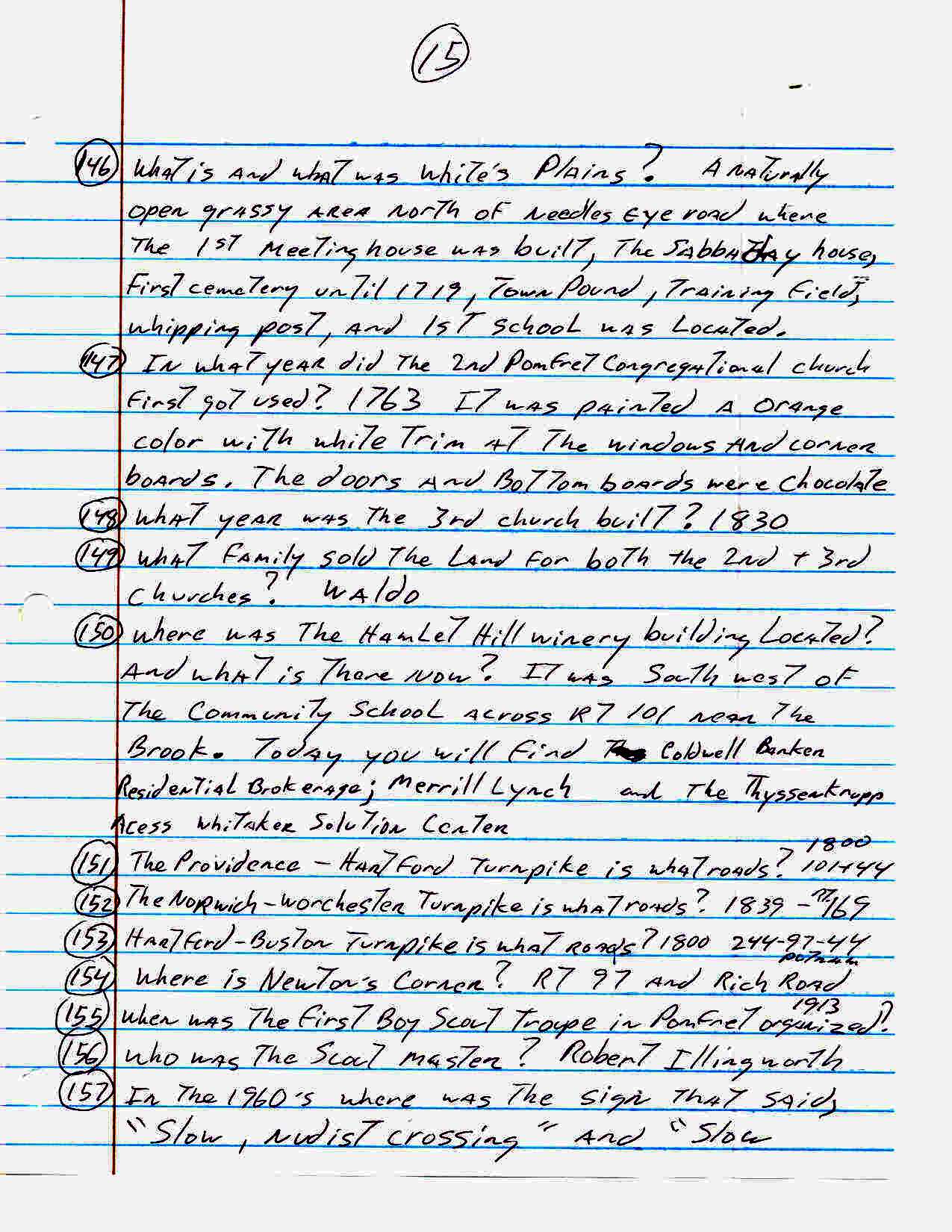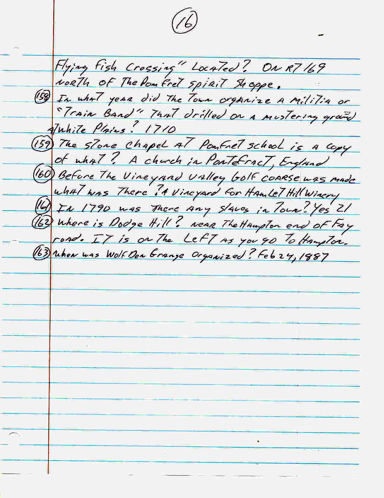 For an activity at our senior center John Carter came up with the following list of one hundred sixty three trivia questions about the town of Pomfret. How many of these did you know??