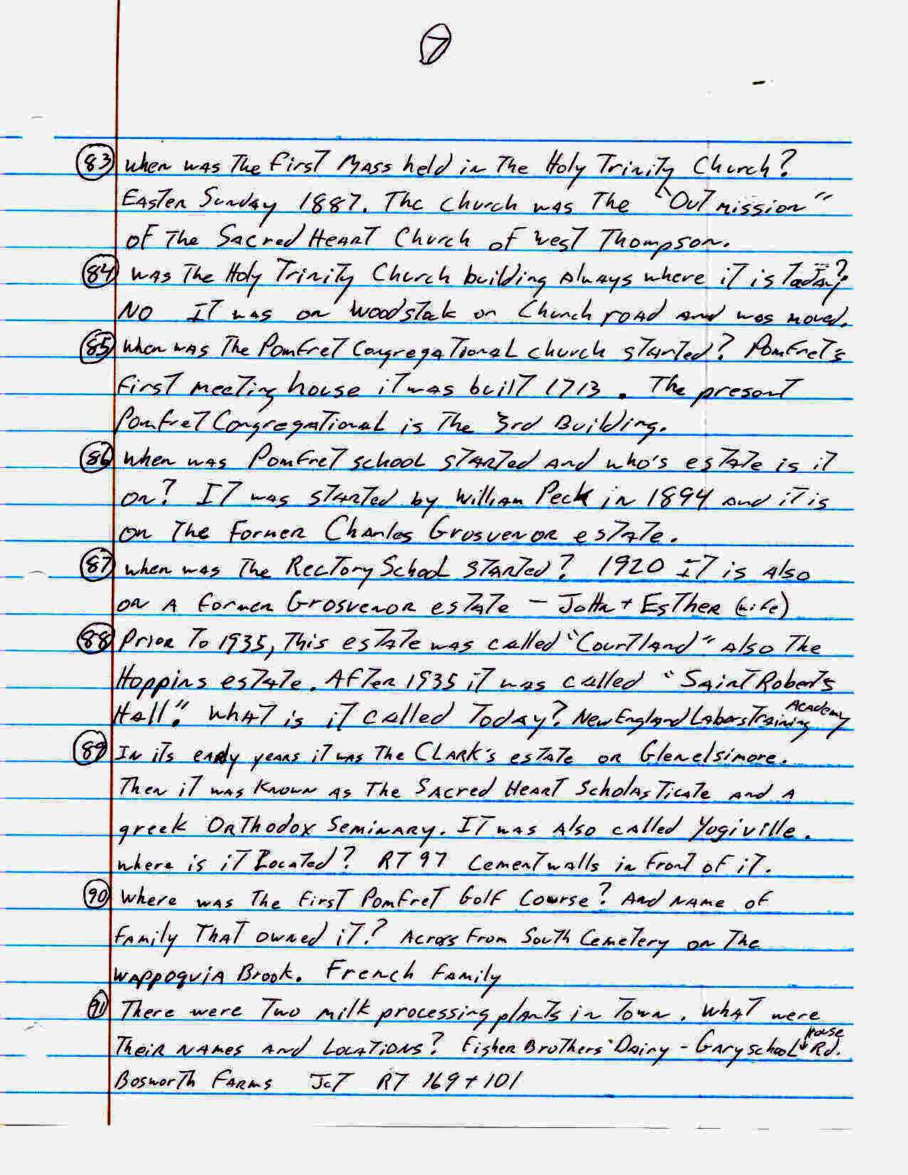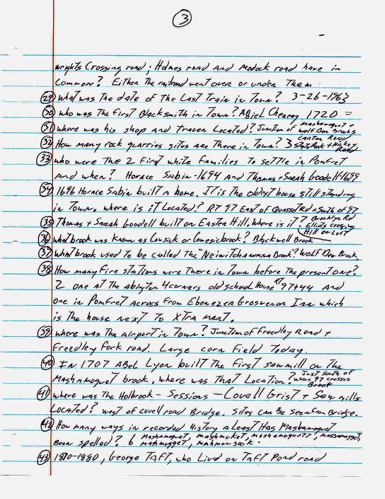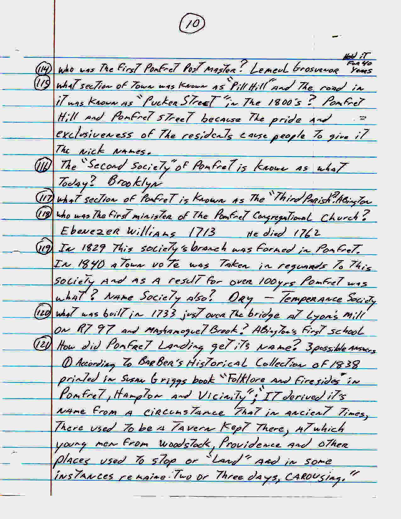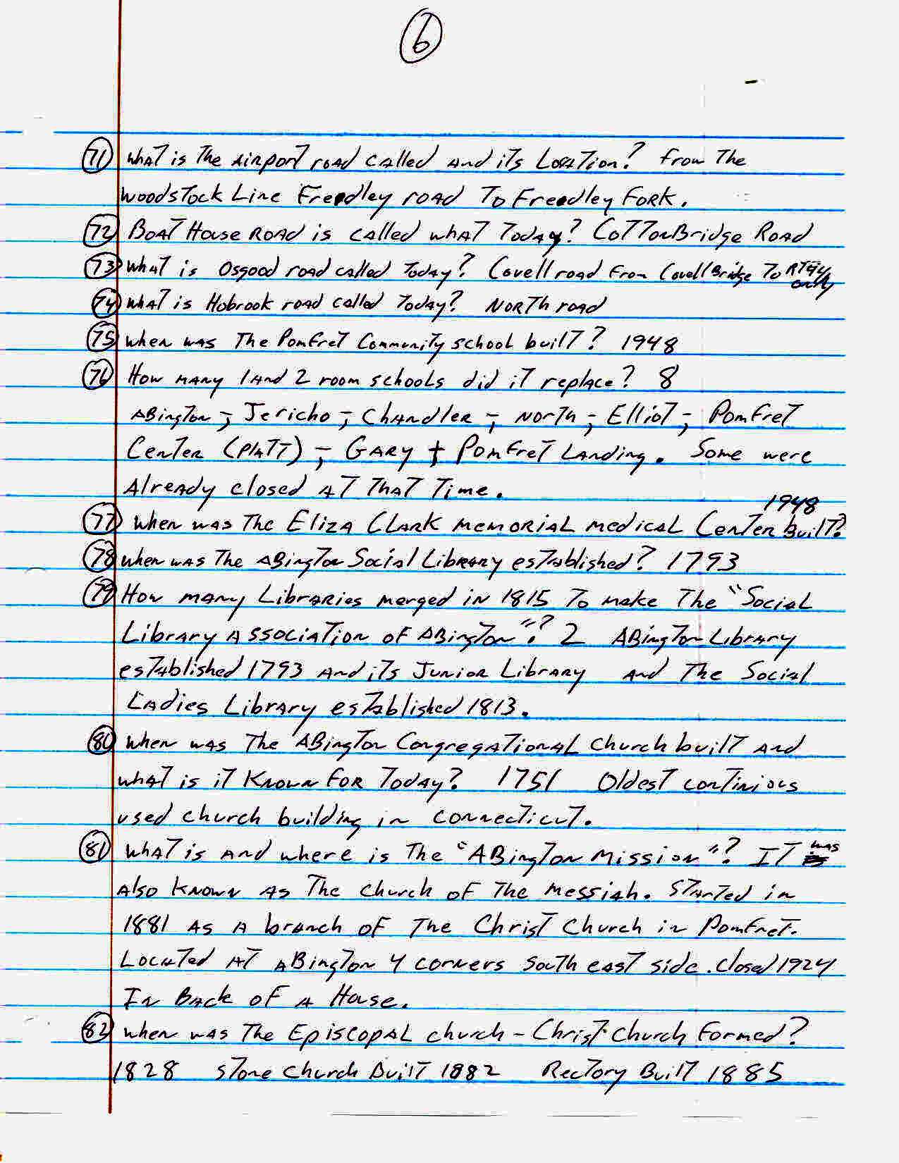 For an activity at our senior center John Carter came up with the following list of one hundred sixty three trivia questions about the town of Pomfret. How many of these did you know??