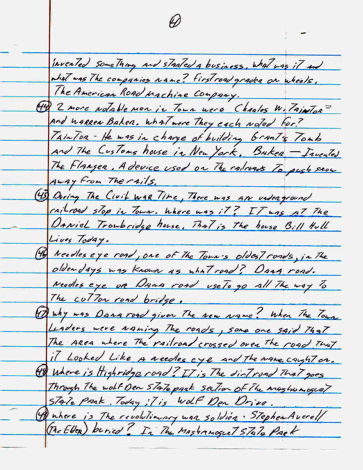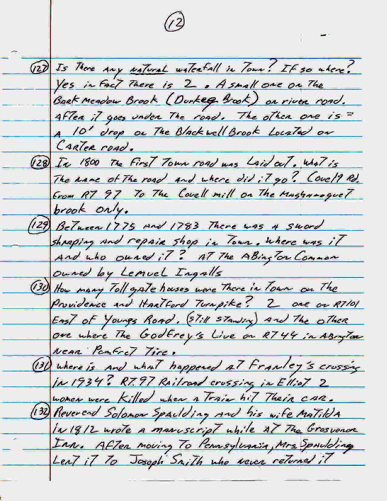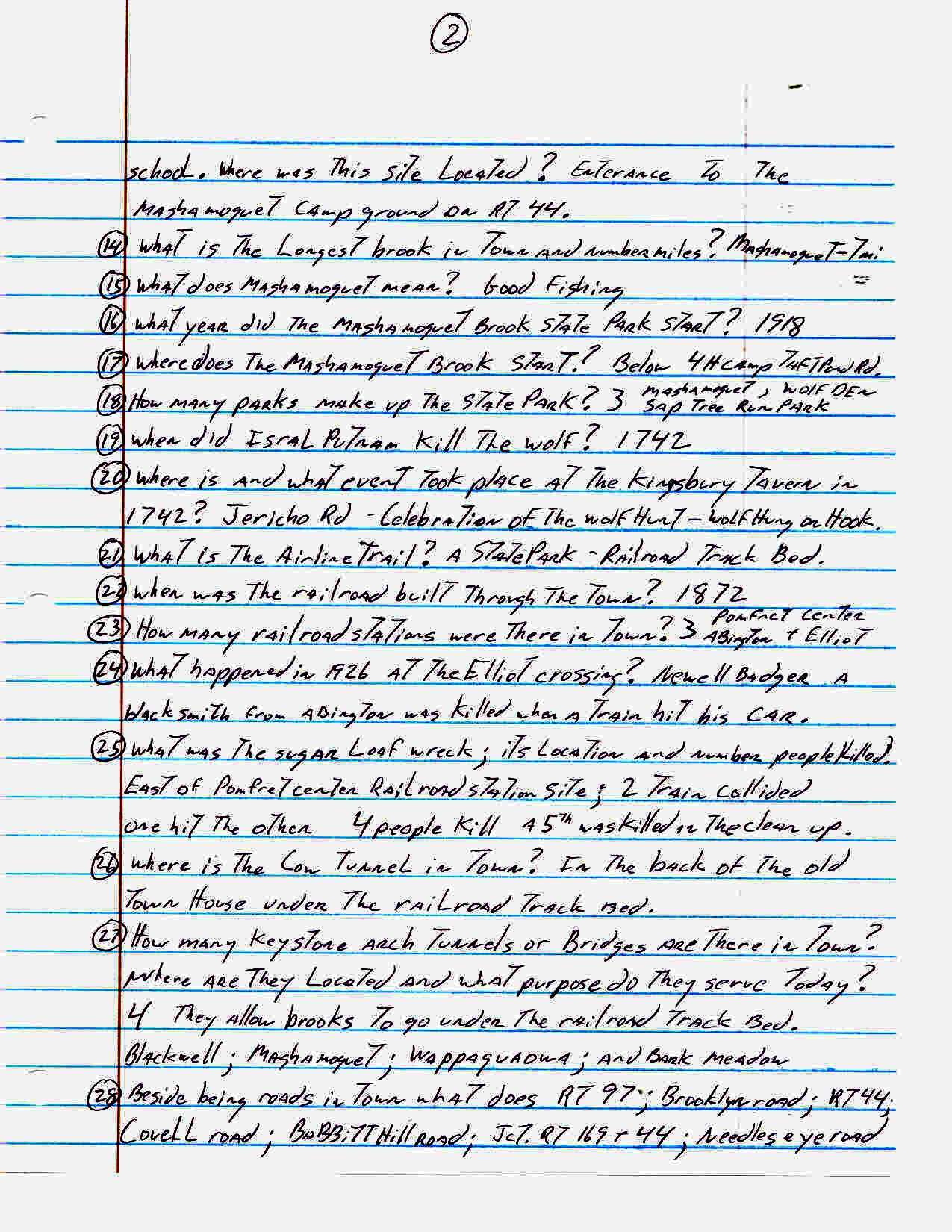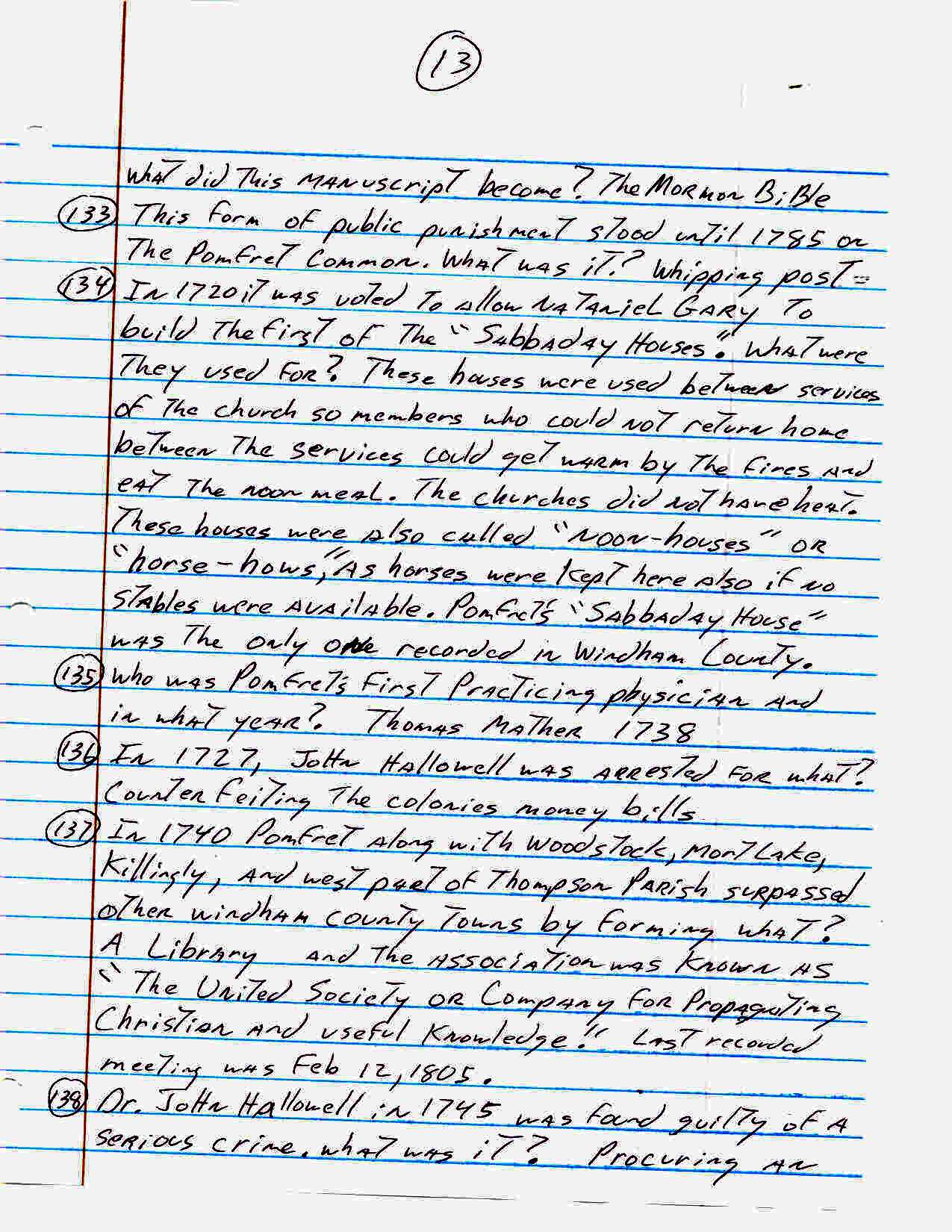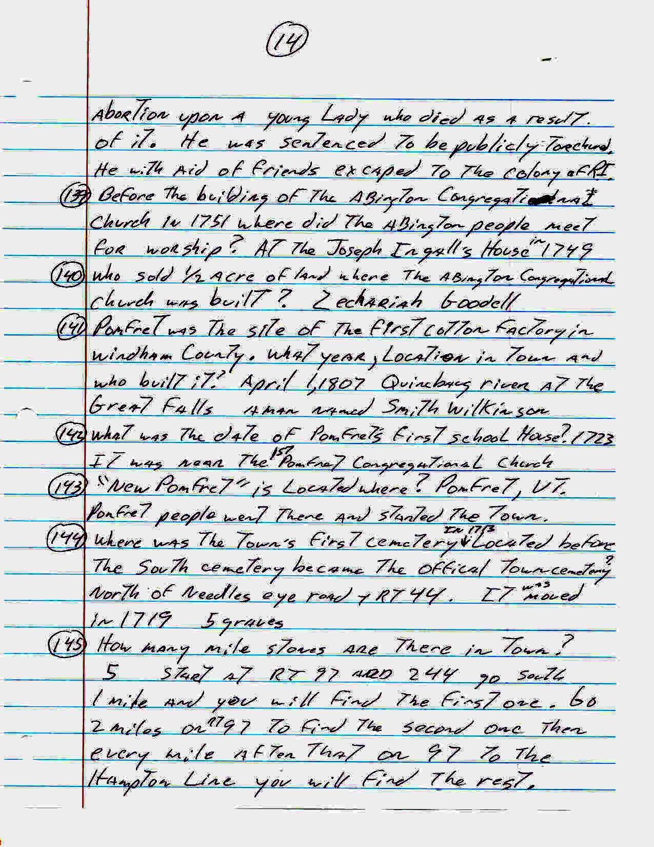 For an activity at our senior center John Carter came up with the following list of one hundred sixty three trivia questions about the town of Pomfret. How many of these did you know??
